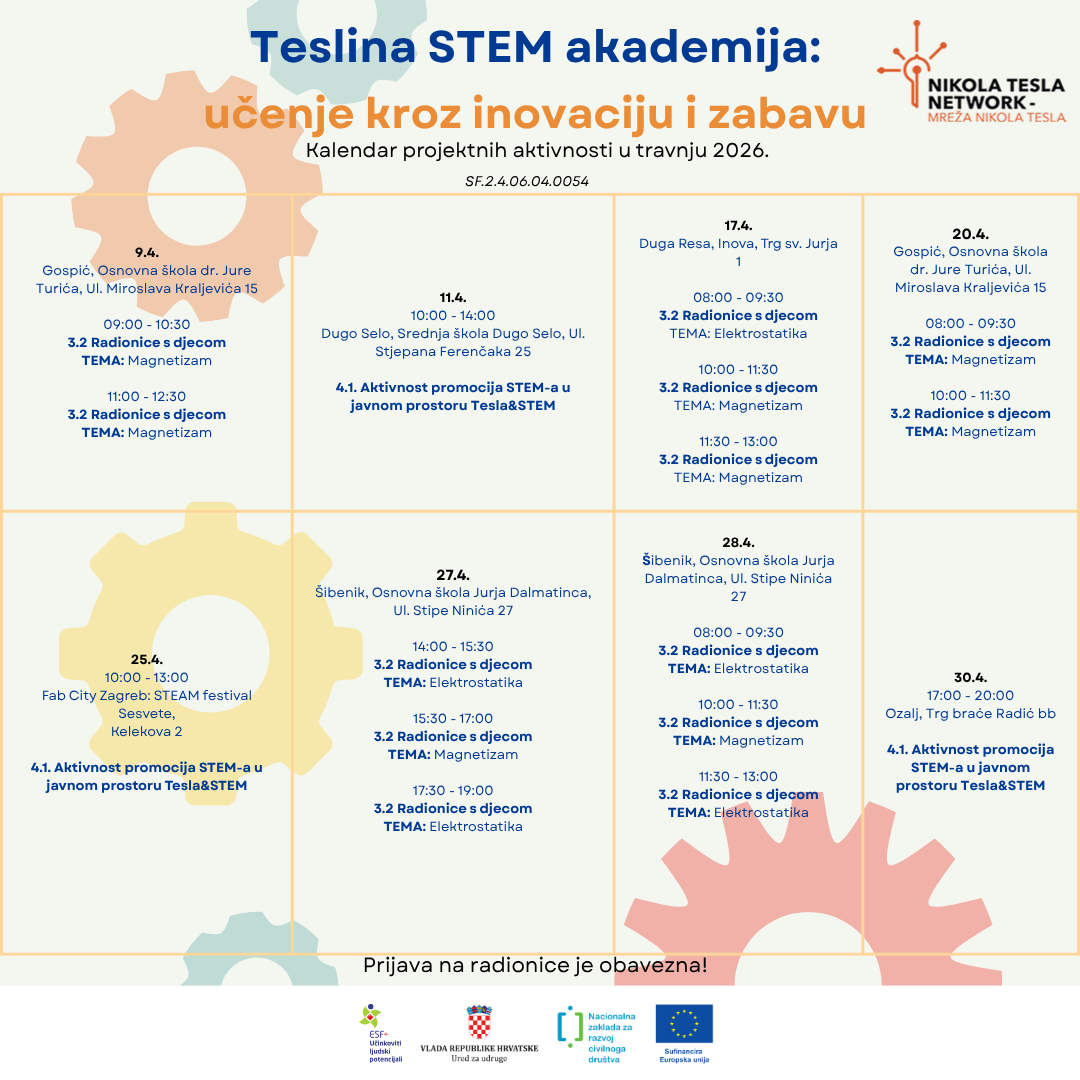 Dodali smo Tesla & STEM manifestaciju koja će se održati 25. travnja u sklopu Fab City Zagreb: STEAM Festival Sesvete.