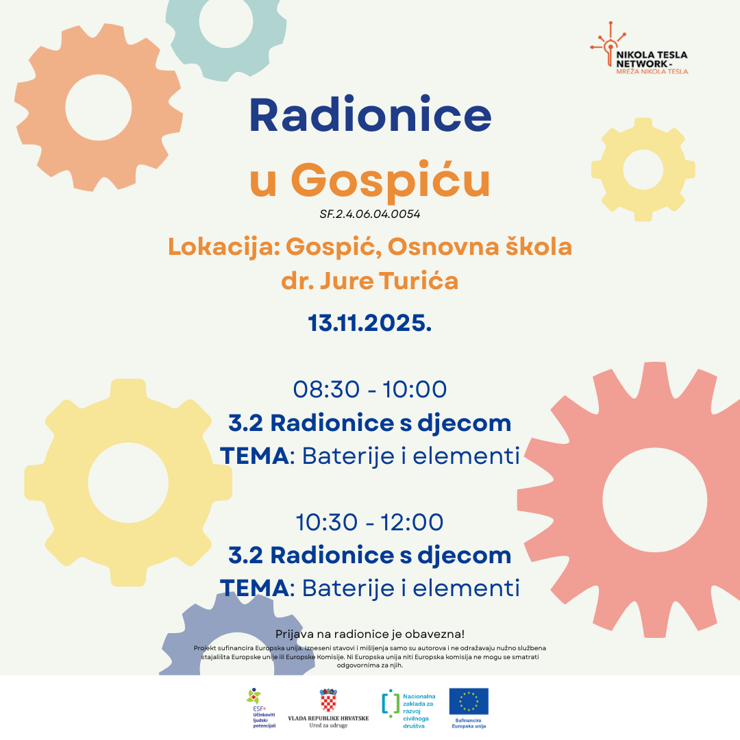 Udruga Nikola Tesla Network – Mreža Nikola Tesla održat će zanimljive STEM radionice u Osnovnoj školi dr. Jure Turića u Gospiću.